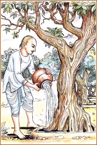 was born on Fagun Sud Punam (Holi) in 1829 in Mahuva. He served Aksharbrahma Gunatitanand Swami in Junagadh in many ways. An ideal disciple quickly learns about his guru’s wishes. The guru does not have to tell the disciple which seva needs to be done. Bhagatji Maharaj always managed to learn about Swami’s wishes and instantly performed them. Once Swami was seated in a mango grove in Malia. He looked at the trees and casually said, “These mango trees are drying up.” Bhagatji instantly got up. He realized that Swami wished the trees to be watered. He then fetched water from a nearby well. There were 300 trees. He poured 4 potfuls of water to each tree. That means he fetched 1200 potfuls of water from the well! An astonishing feat! Supreme seva! On another occasion, the work of building the haveli in Junagadh stopped. This was because a dead dog lay on the heap of stone slabs. Nobody wished to touch it. Swami came to know of this and casually asked, “Why has the supply of stones stopped ?” Bhagatji got up instantly. He changed his clothes and removed the dead dog. The supply of stones started. Then he had a bath and returned to Swami in the assembly hall. By performing difficult seva instantly, without being told, Bhagatji Maharaj earned Gunatitanand Swami’s grace and blessings. |